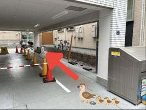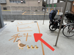 ④「ジビ科」と書いてある場所が当院の駐輪場となります🦆